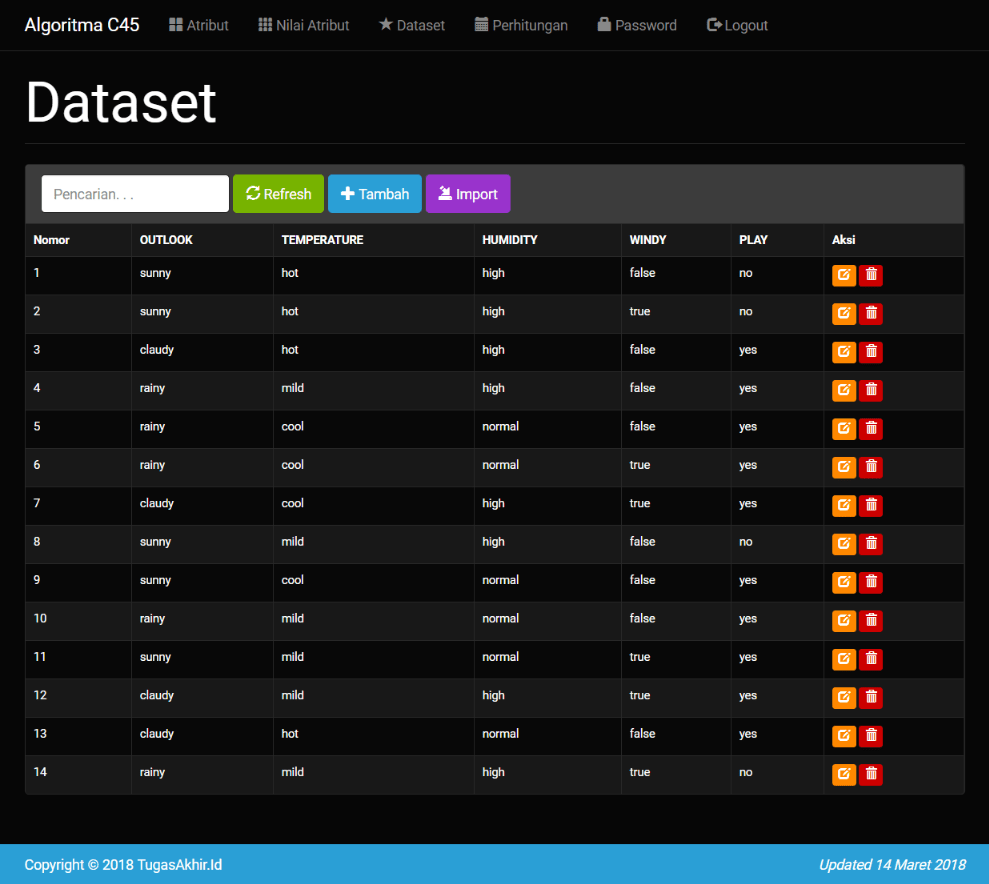 Download contoh program, belajar teori algoritma pemrograman dengan source kode. Php memiliki fasilitas untuk melakukan koneksi ke database. Aplikasi ini dibuat menggunakan program php, yang bisa diinstal di local host anda. Script program php disimpan dan dijalankan di sisi server sehingga keamanan data lebih terjamin. Download contoh program, belajar teori algoritma pemrograman dengan. Source code source code data mining algoritma c45 php mysql. Teori dan aplikasi c++ dengan contoh lebih dari 280 source code. Contoh data set data mining. Aplikasi sistem pakar menggunakan metode apriori dengan mengambil contoh kasus analisis market basket pada supermarket. Berikut ini akan di implementasikan bagaimana membuat program clustering dengan . Contoh implementasi data mining dengan algoritma c4.5 menggunakan php dan mysql untuk analisis prediksi masa studi mahasiswa . Materi crud berisi bagaimana php dapat melakukan tampil data, tambah data, detail data, hapus data, dan ubah data dari database mysql. Download source code aplikasi data mining clustering berbasis web yang dibangun menggunakan bahasa pemrograman php dan database mysql.
